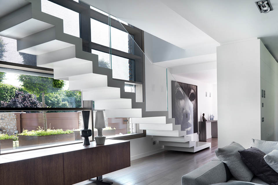 Soluzioni all'avanguardia di scale autoportanti in legno, ferro e vetro.
